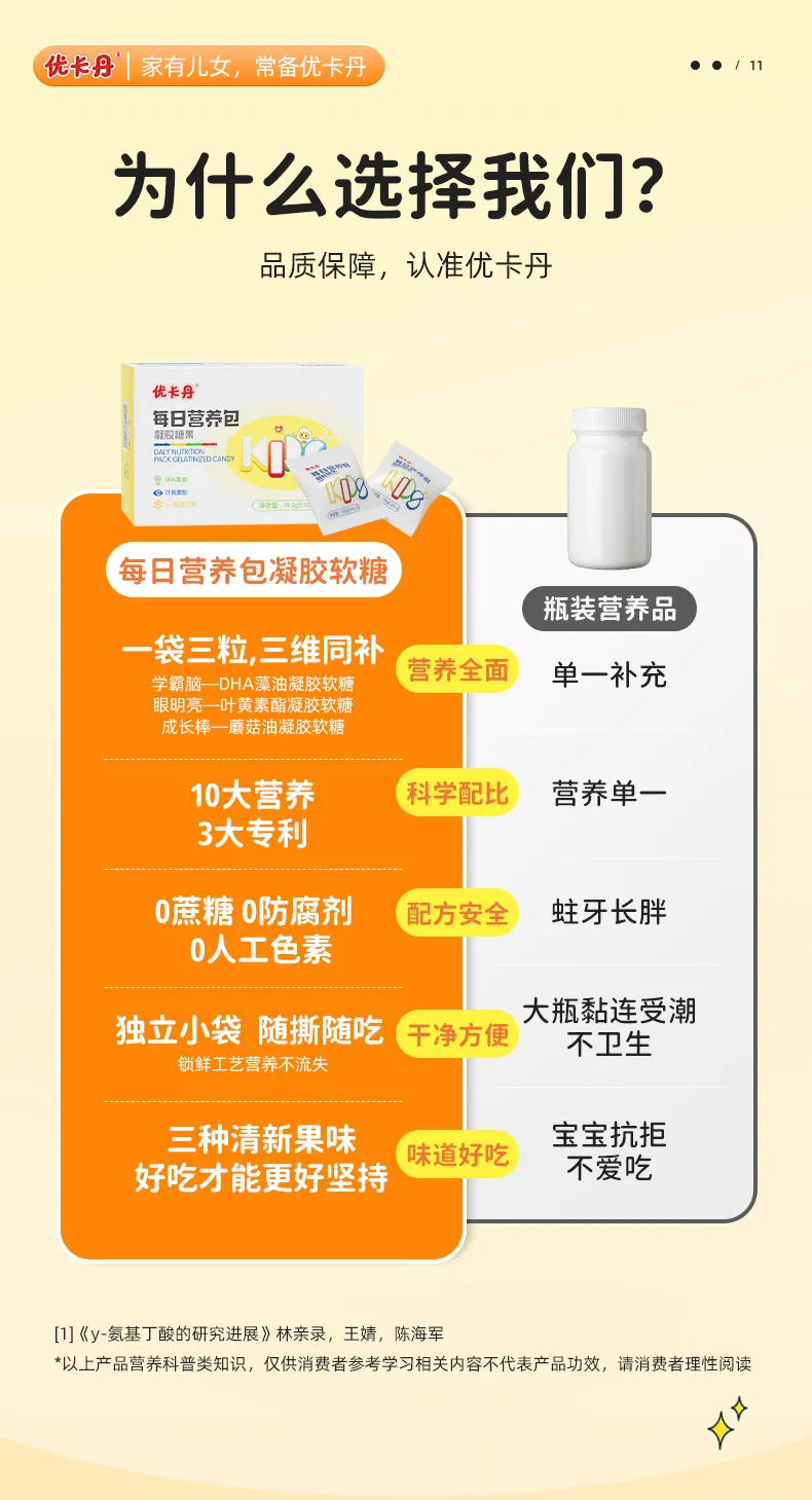 孩子的成长只有一次,不容试错。选择优卡丹每日营养包糖果,就是为孩子的未来选择一份全面的保障。
