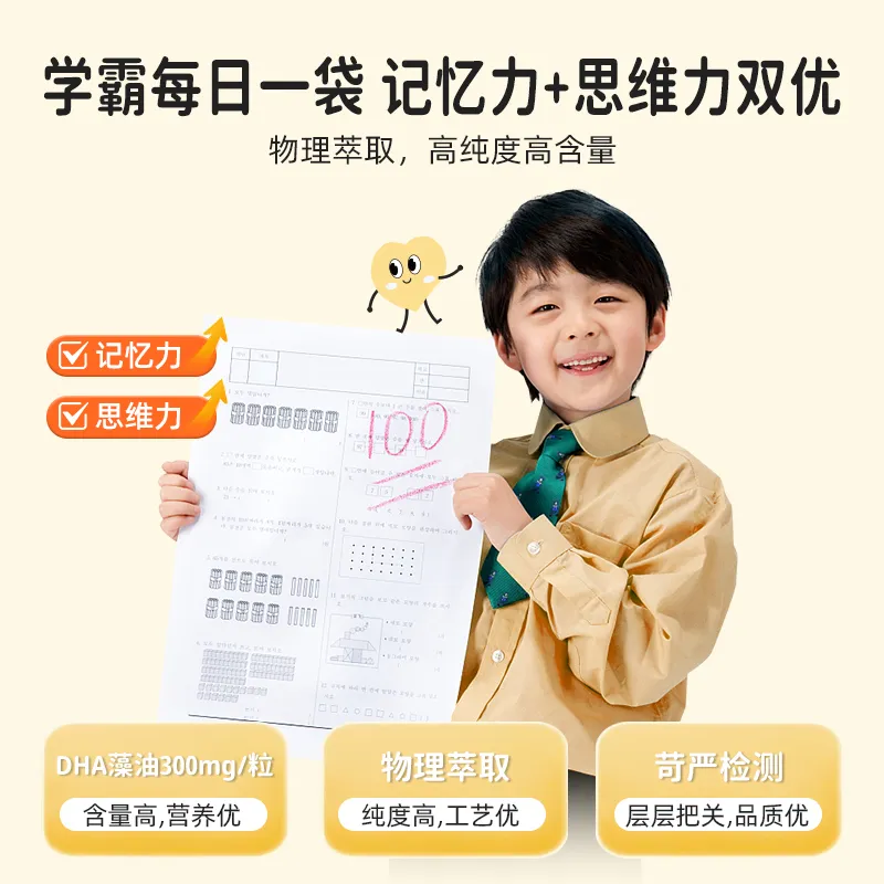 科学解析:DHA是构成大脑神经细胞的关键物质,堪称“脑黄金”,它能助力神经网络构建,让孩子思维更敏捷,记忆更牢固。而GABA则像一位“情绪安抚师”,帮助缓解孩子的烦躁与紧张,让他在学习时更能坐得住、听得进、学得会。