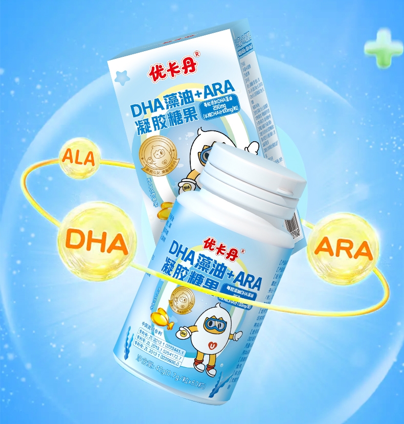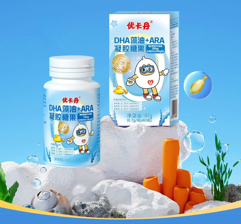 优卡丹DHA藻油+ARA凝胶糖果│60粒大容量,守护孩子超长假期