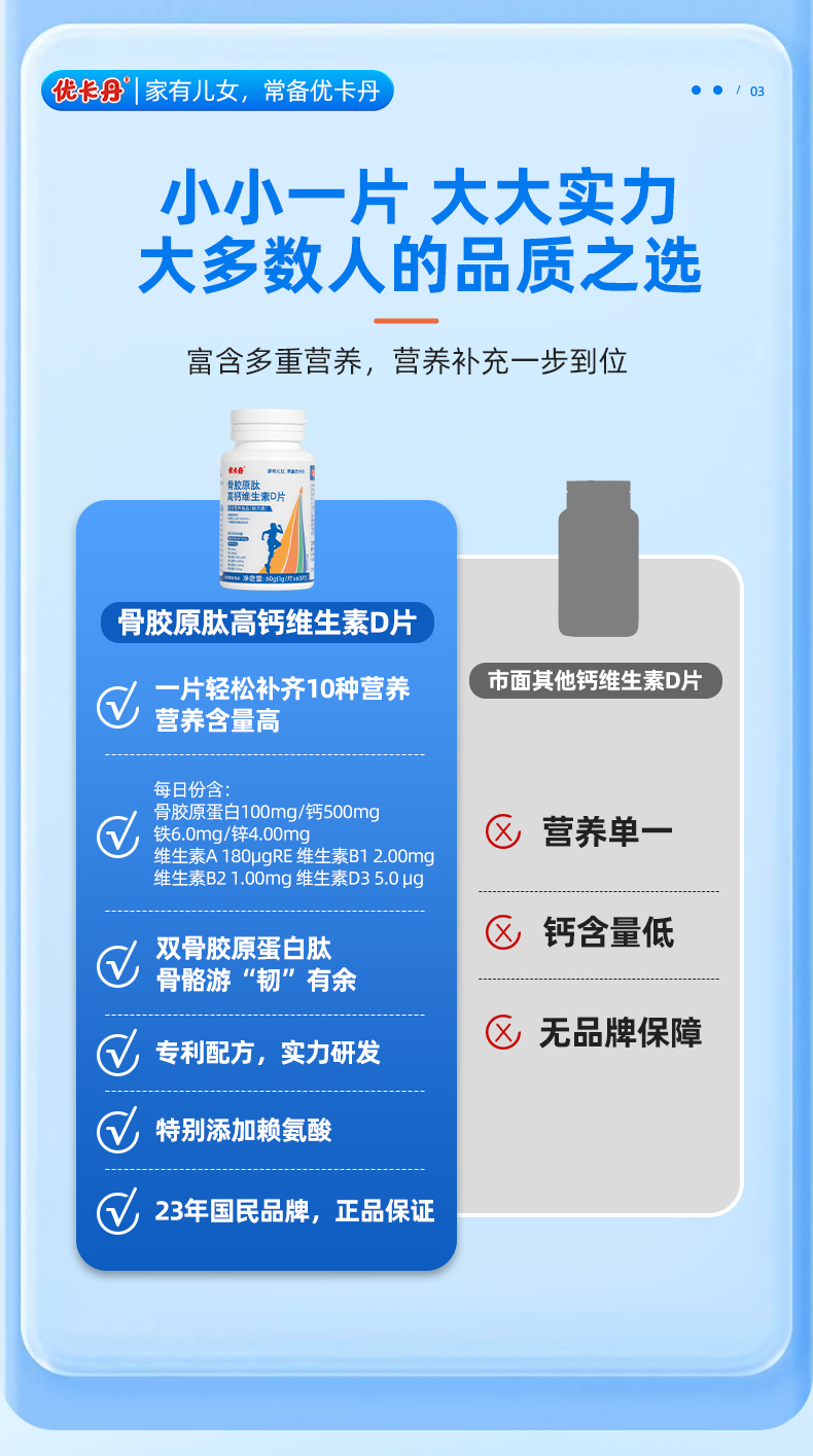 【产品名称】优卡丹骨胶原肽高钙维生素D片