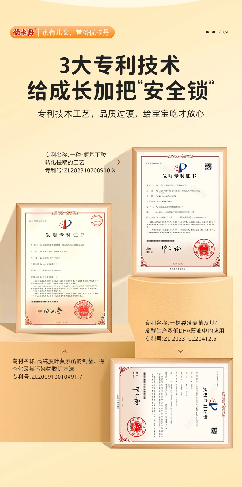 专利技术,高效吸收:优卡丹荣获三项国家专利技术,致力于提升核心成分的纯度和生物利用度。我们相信,吃进去能被高效吸收,才是真正的补充。